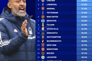 体育资讯4月22日讯 德转数据统计,曼城在本赛季英超控球率最高,诺丁汉森林的控球率全联赛最低。